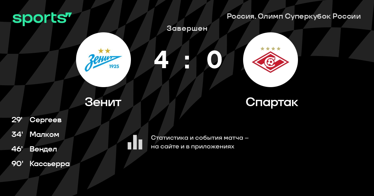 «Зенит» - «Спартак»: прогноз и ставки на матч за Суперкубок России