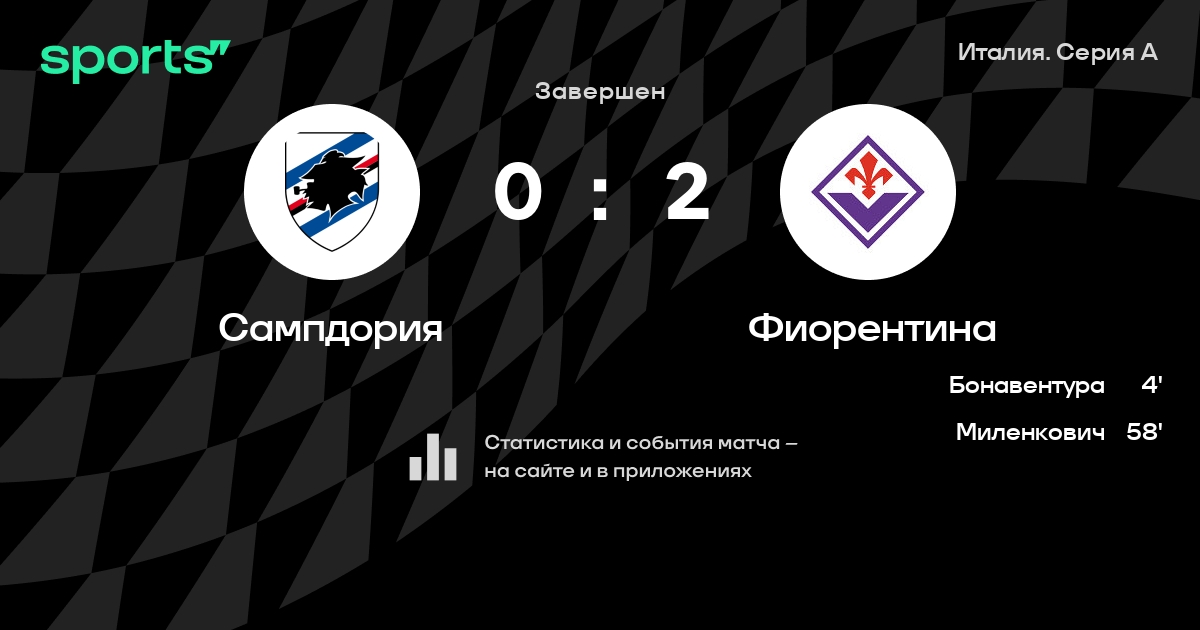 ![[4 тур Серия А 2022/23] Ставки на «Удинезе» - «Фиорентина», «Сампдория» - «Лацио» и «Эмполи» - «Верона»](https://photobooth.cdn.sports.ru/preset/post/4/fe/a512d8d5e4dd29cc64af273e74bcd.jpeg?q=90)