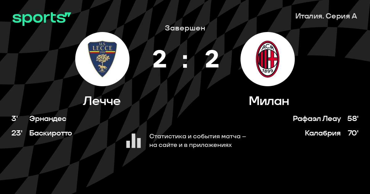 Лечче – Милан: Милан не проигрывает в 8 последних матчах против этого соперника
