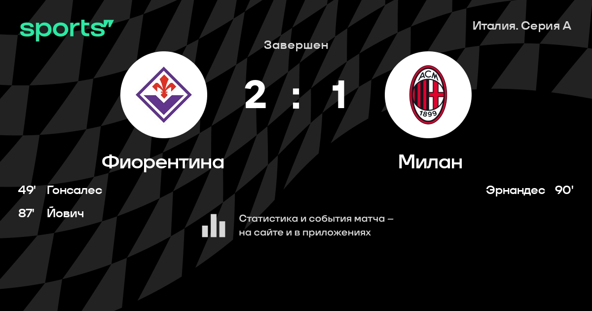 Фиорентина – Милан: Милан не проигрывает в 5 из 7 последних матчей против этого соперника