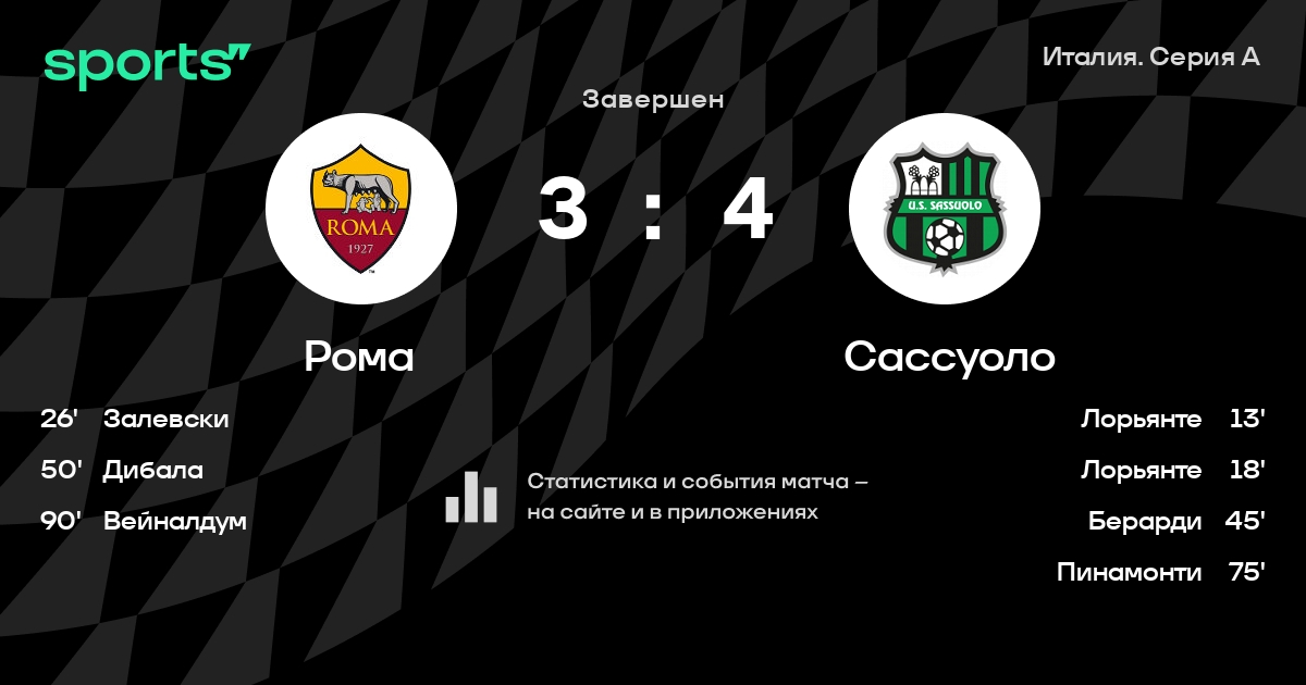 Рома – Сассуоло: Сассуоло забивает в 4 последних матчах против этого соперника