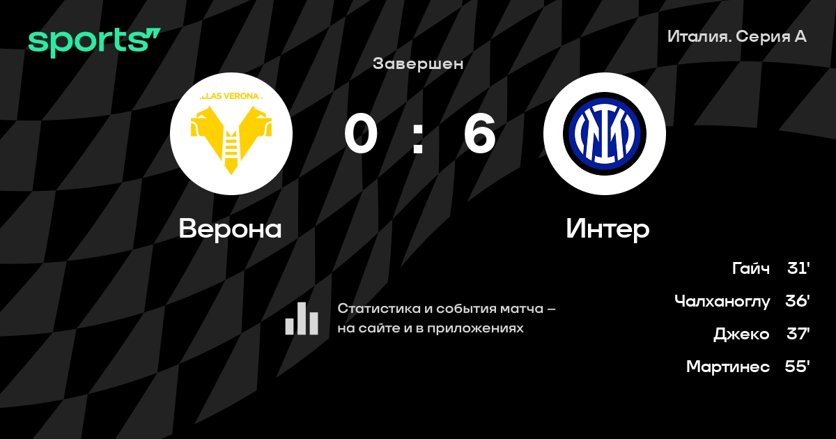 Верона – Интер: Интер побеждает в 5 последних очных матчах