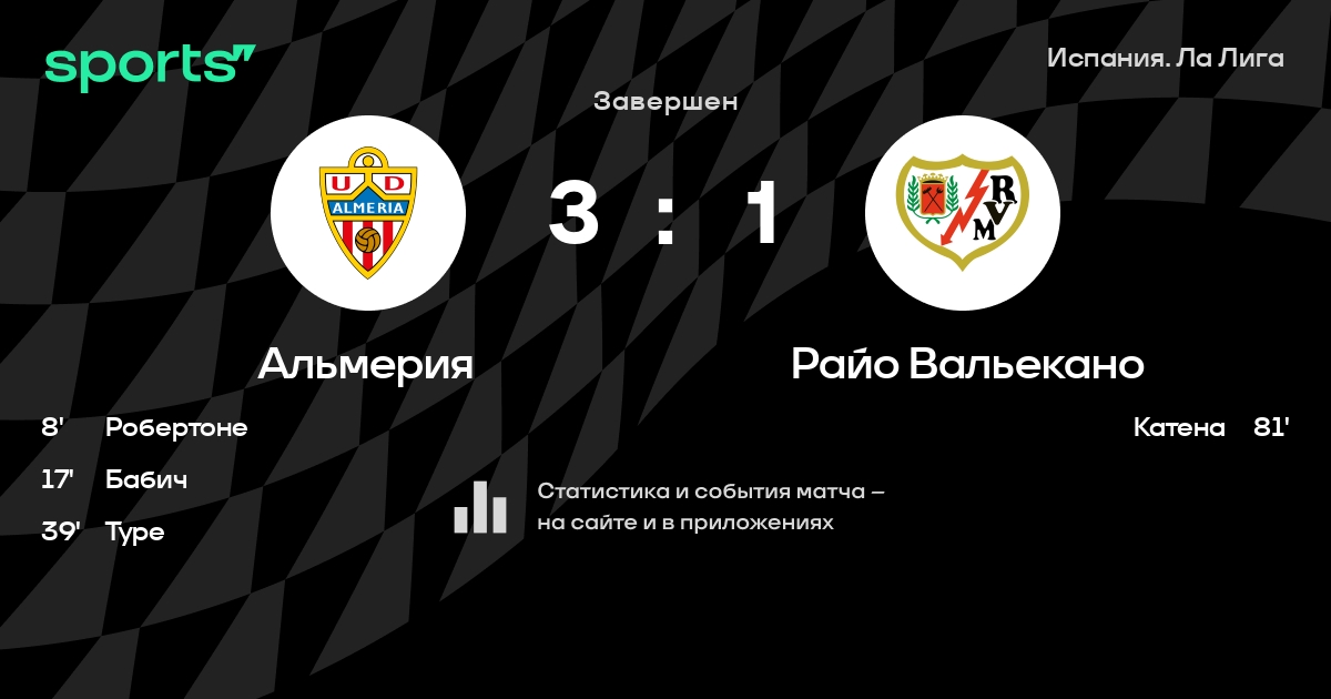 Альмерия – Райо Вальекано: Райо Вальекано побеждает в 4 последних очных матчах в турнире «Примера»