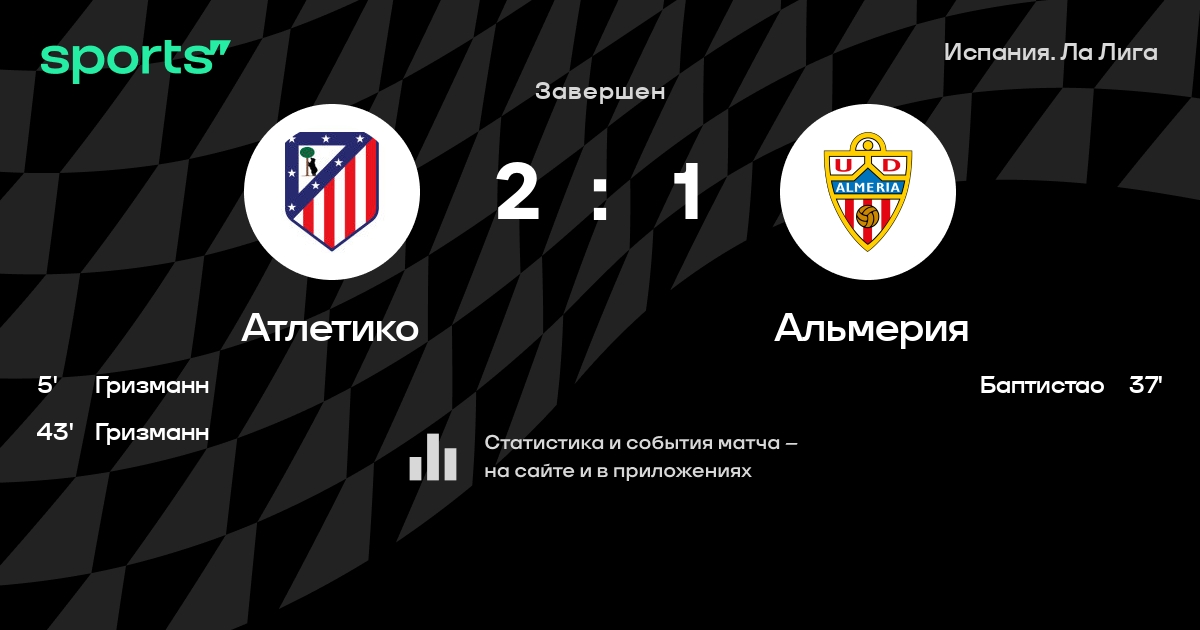 «Атлетико» обыграл «Альмерию» благодаря дублю Гризманна – 2:1