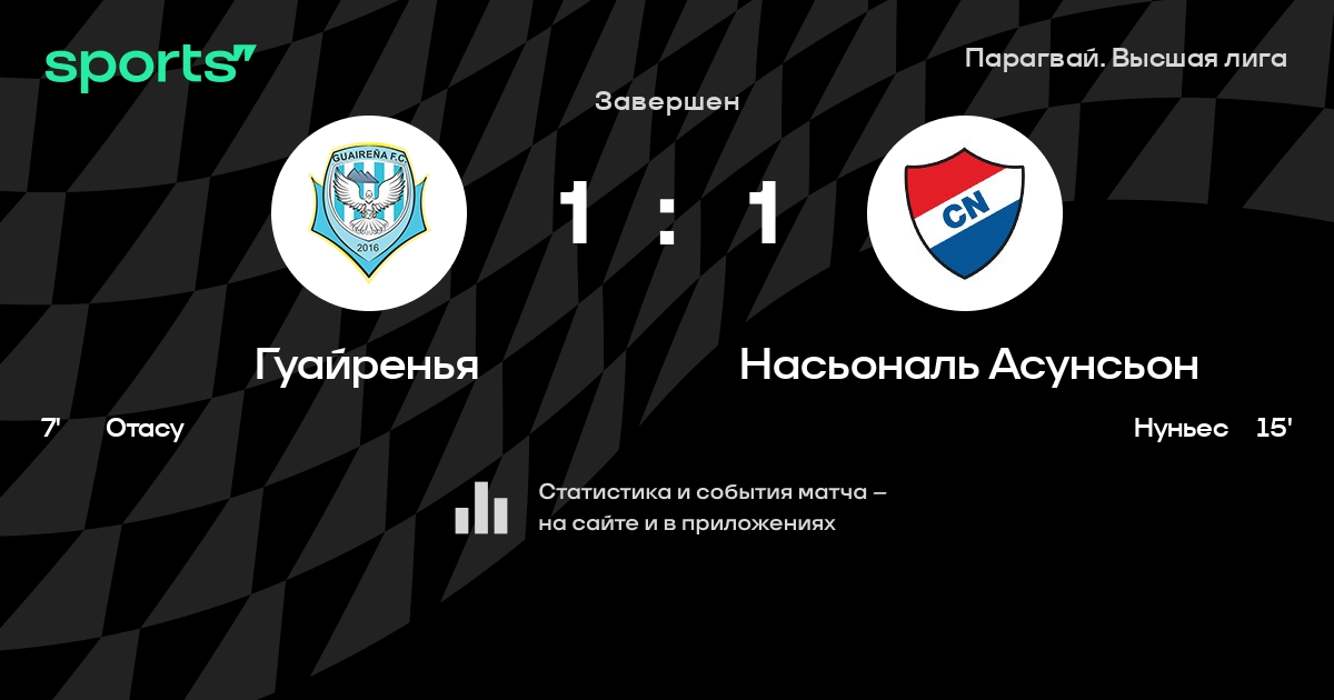 Гуайренья – Насьональ Асунсьон: Гуайренья не проигрывает в 8 из 10 последних матчей против этого соперника