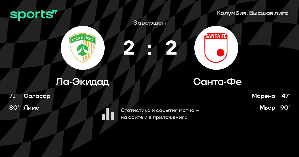 Ла-Экидад – Санта-Фе: Санта-Фе забивает в 7 из 9 последних матчей против этого соперника