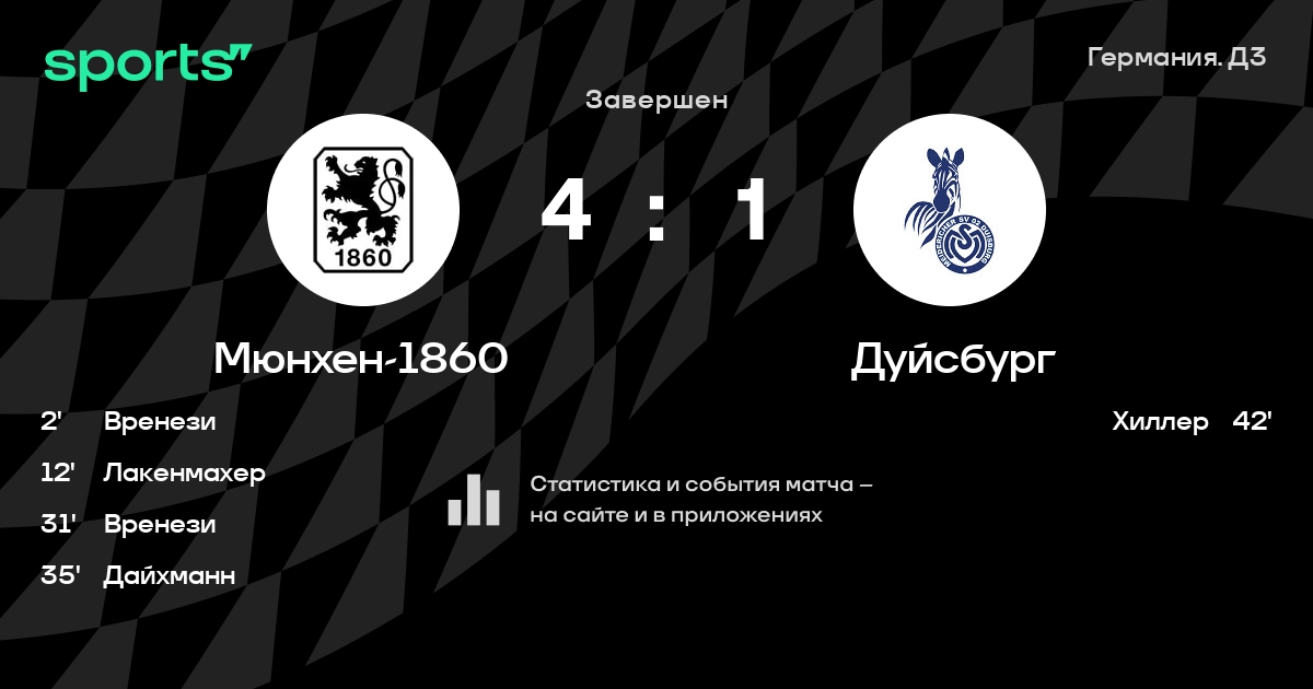 Мюнхен-1860 – Дуйсбург: Дуйсбург забивает в 6 из 8 последних матчей против этого соперника