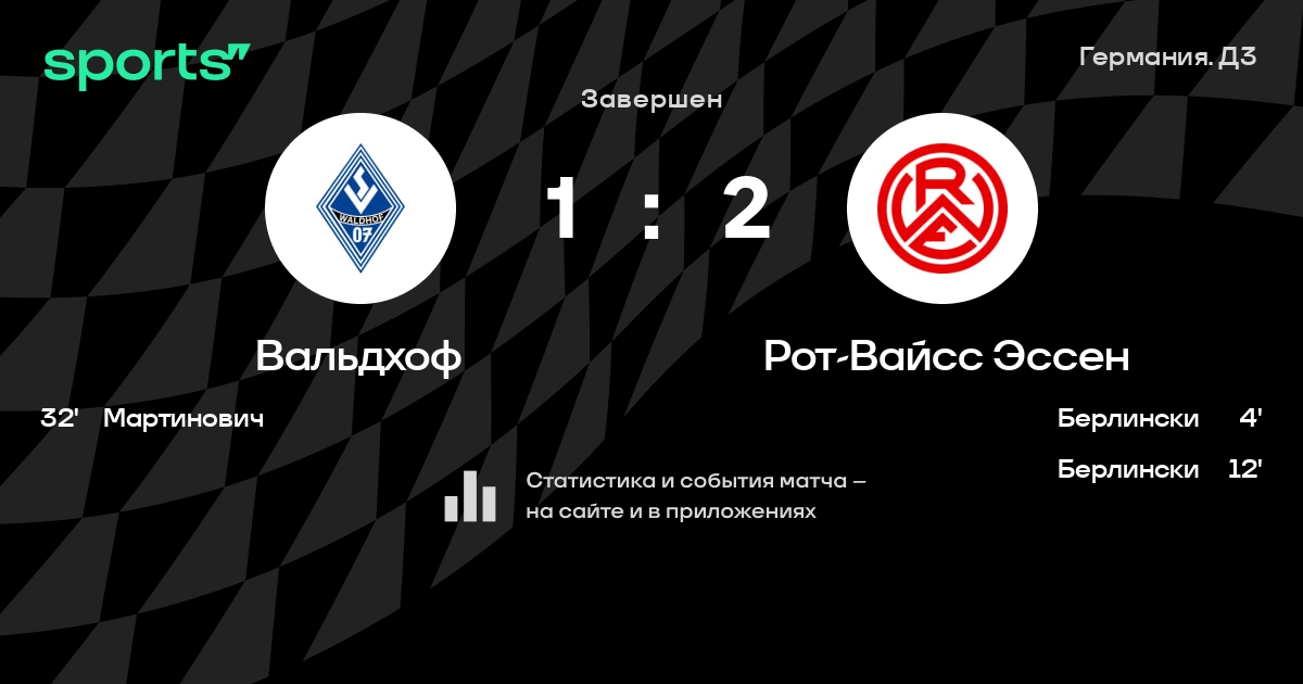 Вальдхоф – Рот-Вайсс Эссен: Рот-Вайсс Эссен забивает в 6 последних матчах против этого соперника