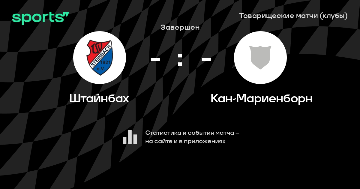Штайнбах не проигрывает в 3 последних матчах в рамках турнира «Товарищеские матчи (клубы)». В 3 последних матчах в турнире «Товарищеские матчи (клубы)» Штайнбах обязательно забивает. В последних 5 играх Штайнбах забивает 7 голов. В последних 5 играх Штайнбах пропускает 3 голов.