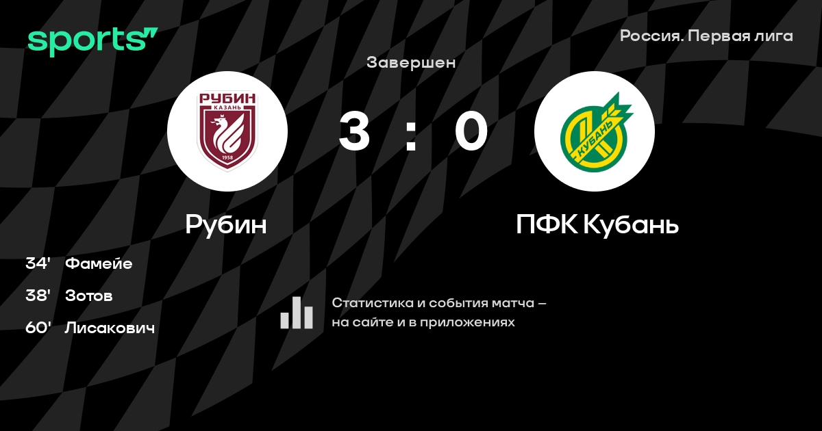В последних 5 играх Рубин забивает в среднем 1.40 гола за игру