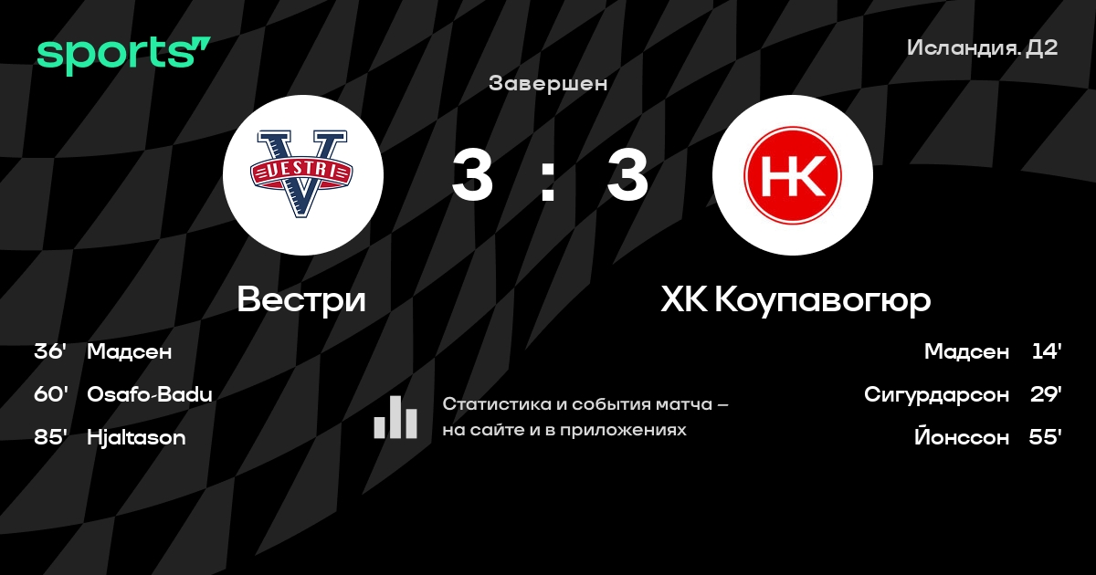 Muhammad - Norest, Hjaltason, Garðarsson, Хименес - Osafo-Badu, Gil, Мадсен, Fall - Tufegdžić, BjarnasonЗапасные: Стейнарссон, Helgason, Einarsson, Асгейрссон, Montipò, Кинг, Сонгани