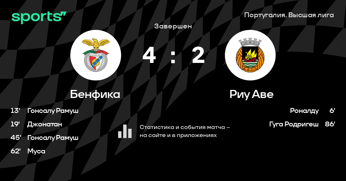 Бенфика – Риу Аве: Бенфика забивает в 17 последних матчах против этого соперника