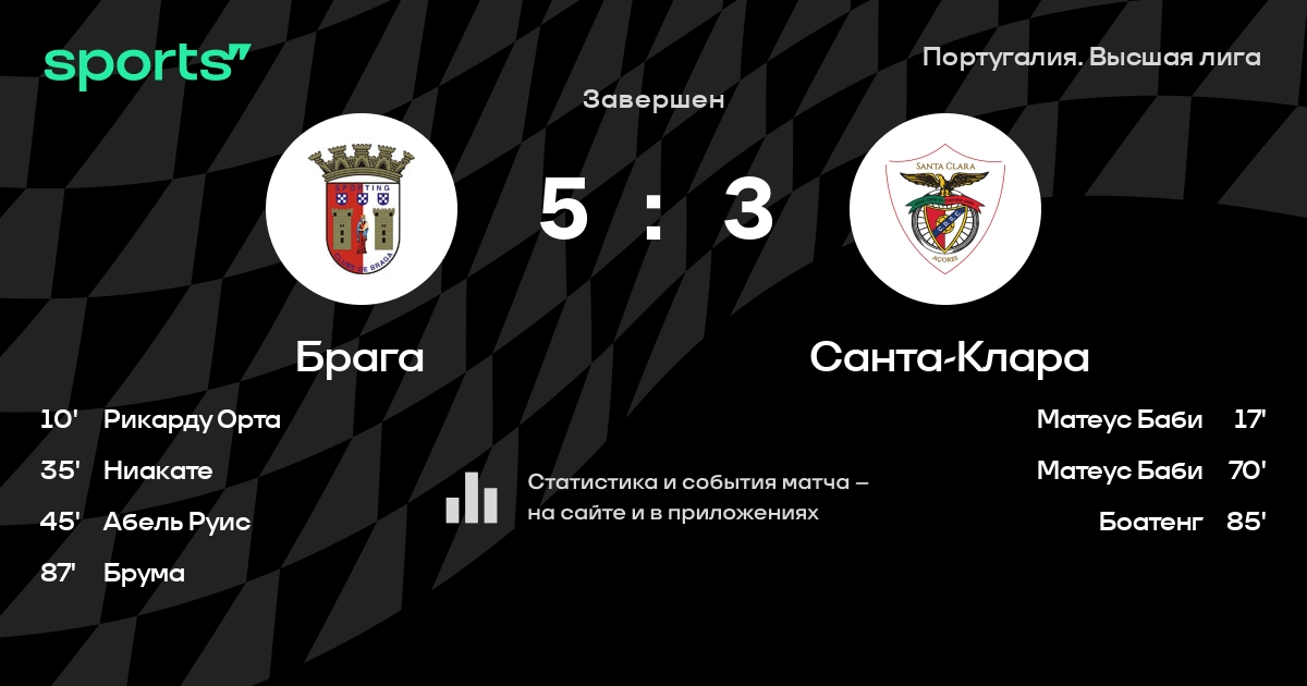 Брага – Санта-Клара: Брага не пропускает в 3 последних матчах против этого соперника