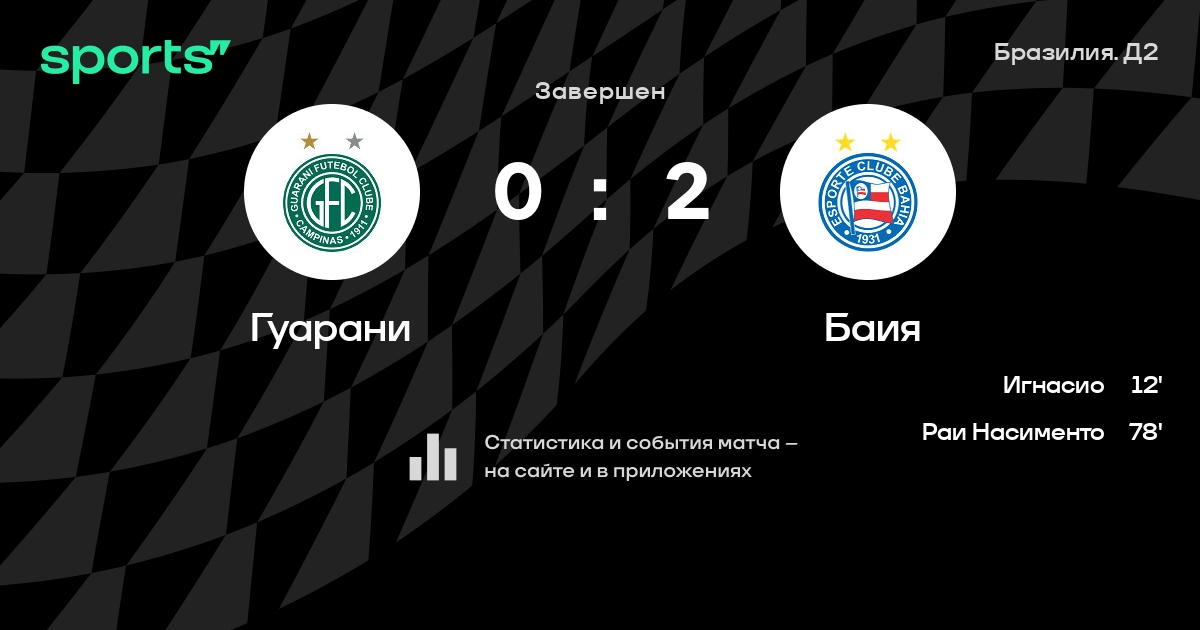 Гуарани – Баия: Гуарани не проигрывает в 6 последних матчах против этого соперника дома