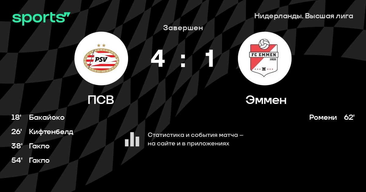 ПСВ – Эммен: ПСВ забивает в 5 последних матчах против этого соперника