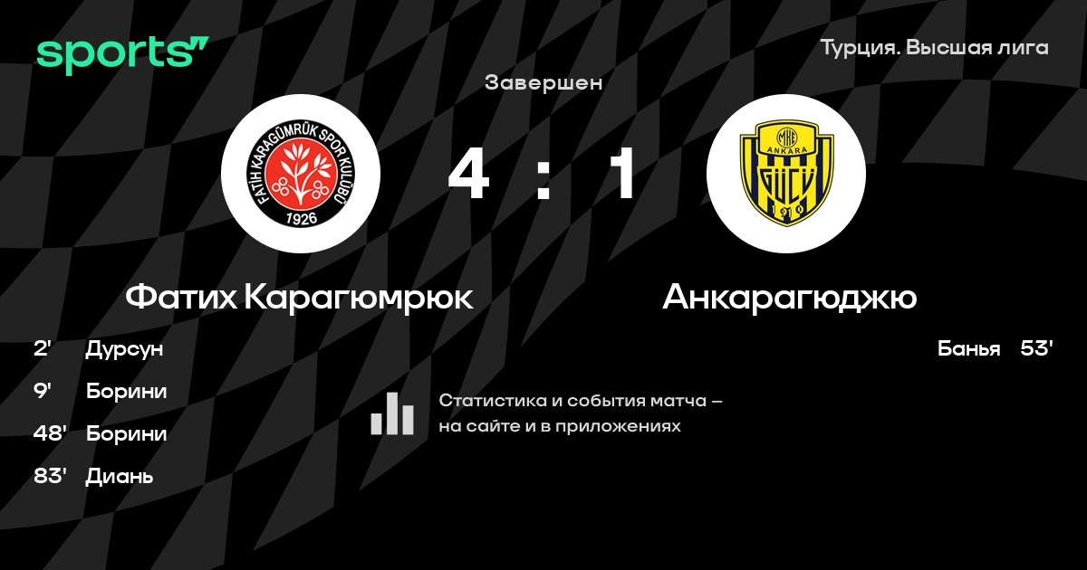 Фатих Карагюмрюк – Анкарагюджю: Анкарагюджю забивает в 5 последних матчах против этого соперника