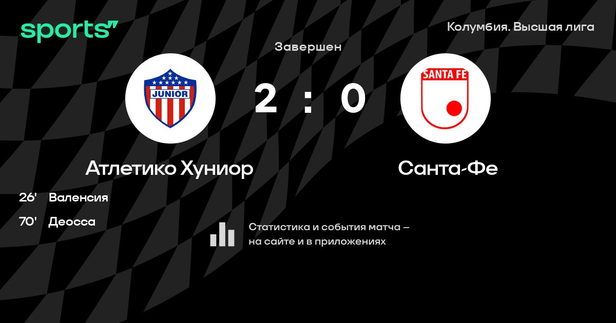 Атлетико Хуниор – Санта-Фе: Атлетико Хуниор не проигрывает в 8 из 10 последних матчей против этого соперника