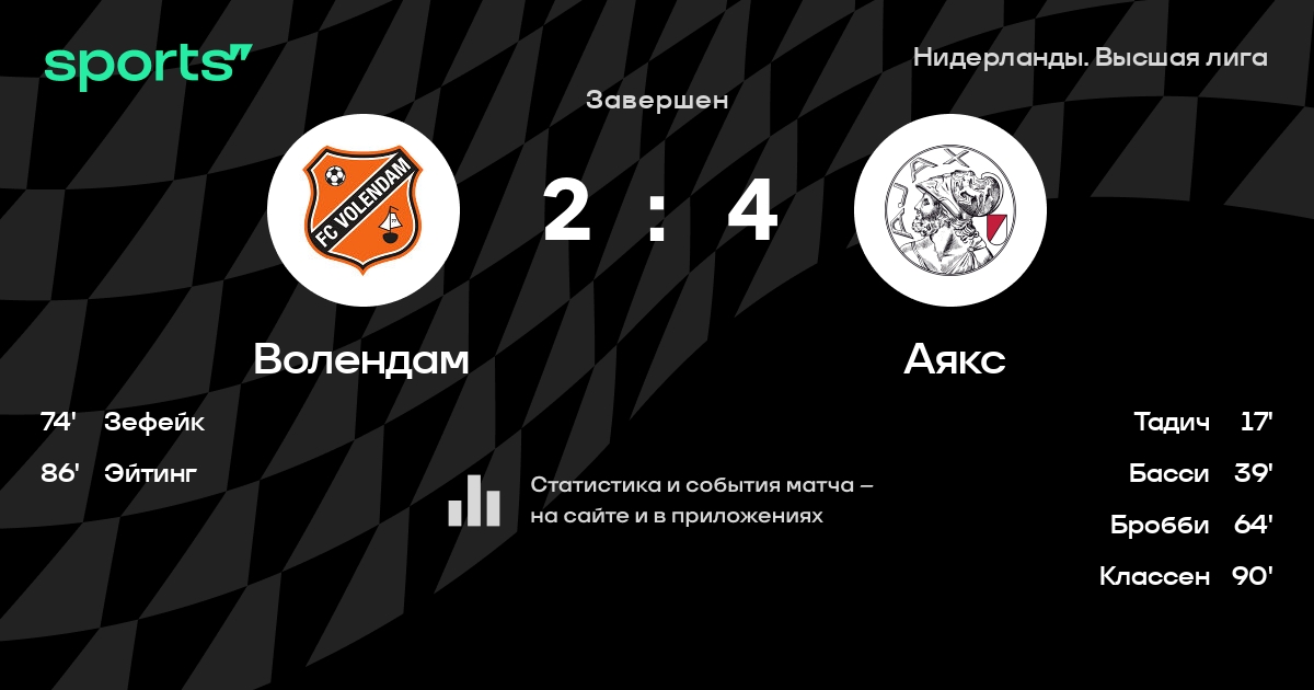 Волендам – Аякс: Аякс побеждает в 3 последних очных матчах