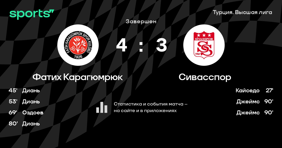 Фатих Карагюмрюк – Сивасспор: коэффициенты