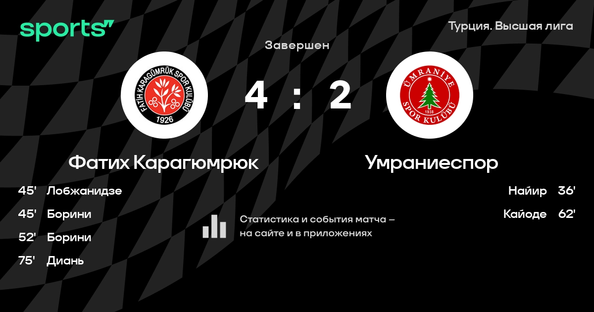 Фатих Карагюмрюк – Умраниеспор: Фатих Карагюмрюк не проигрывает в 6 из 7 последних матчей против этого соперника