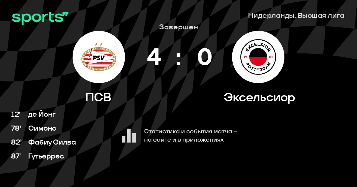ПСВ – Эксельсиор: ПСВ побеждает в 8 последних очных матчах