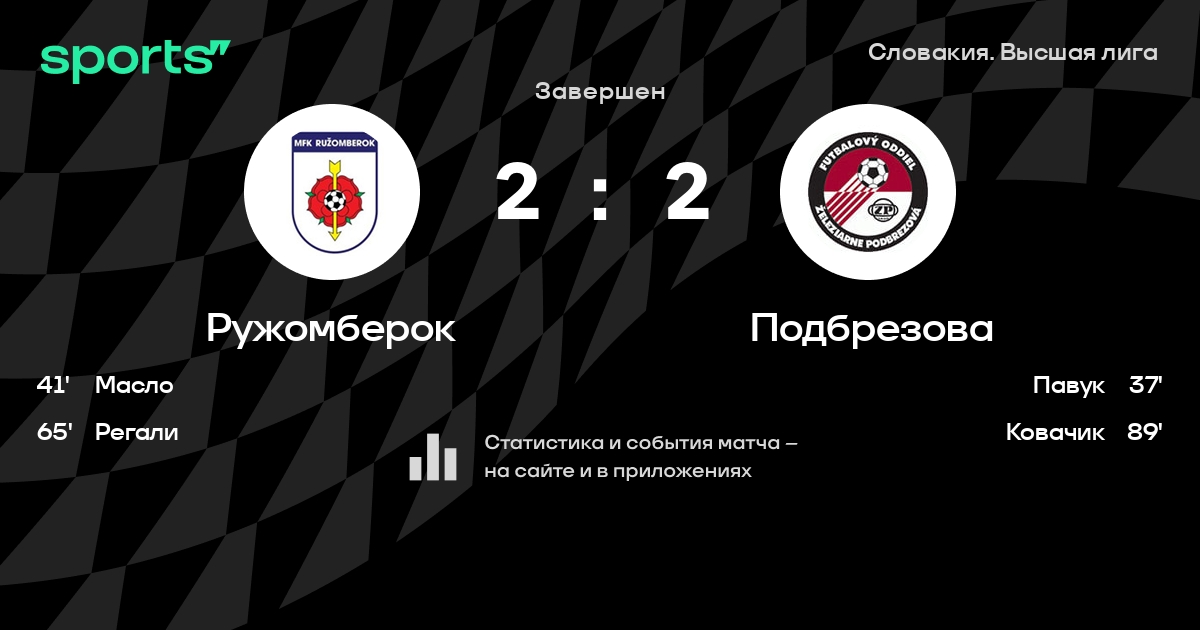 Ружомберок – Подбрезова: Ружомберок забивает в 5 из 7 последних матчей против этого соперника