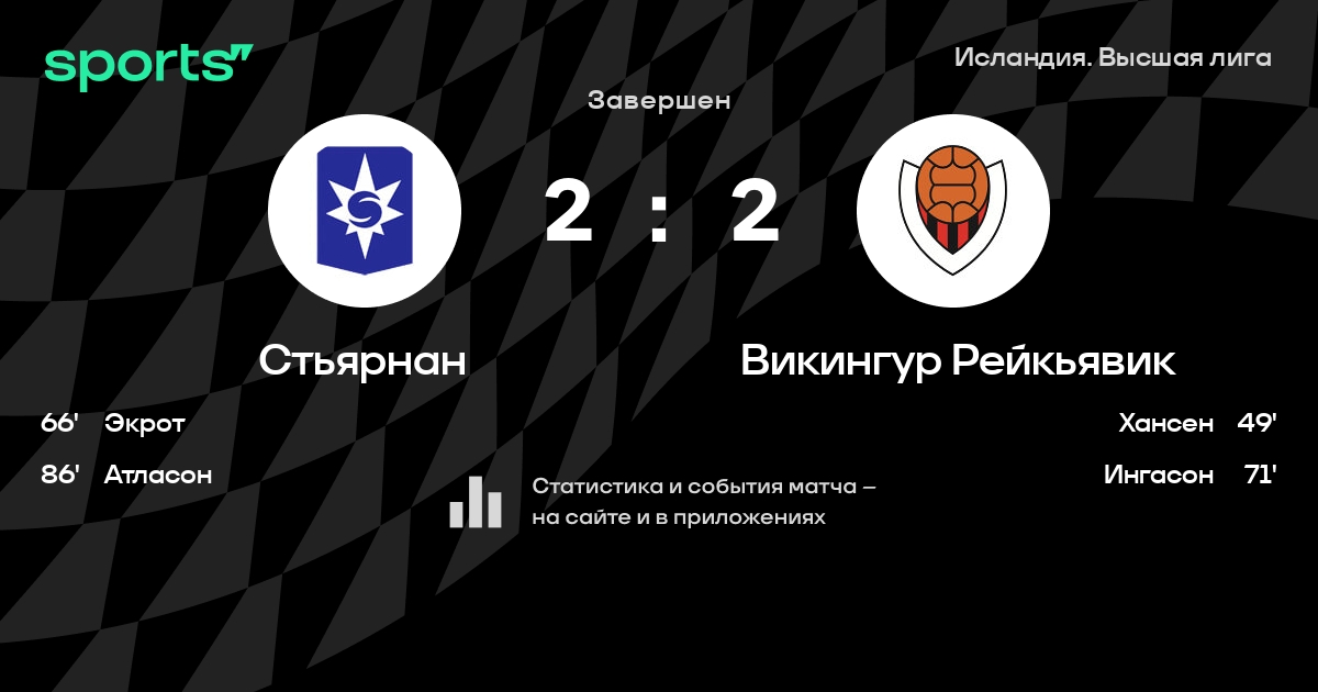 Стьярнан – Викингур Рейкьявик: Стьярнан забивает в 17 последних матчах против этого соперника