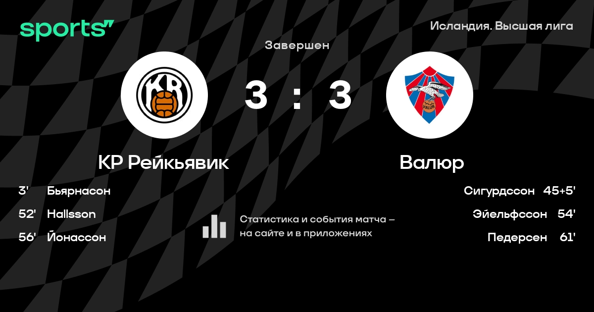 | 4 | КР Рейкьявик | 27 | 9 | 11 | 7 | 42 | 40 | +2 | 38 | ||