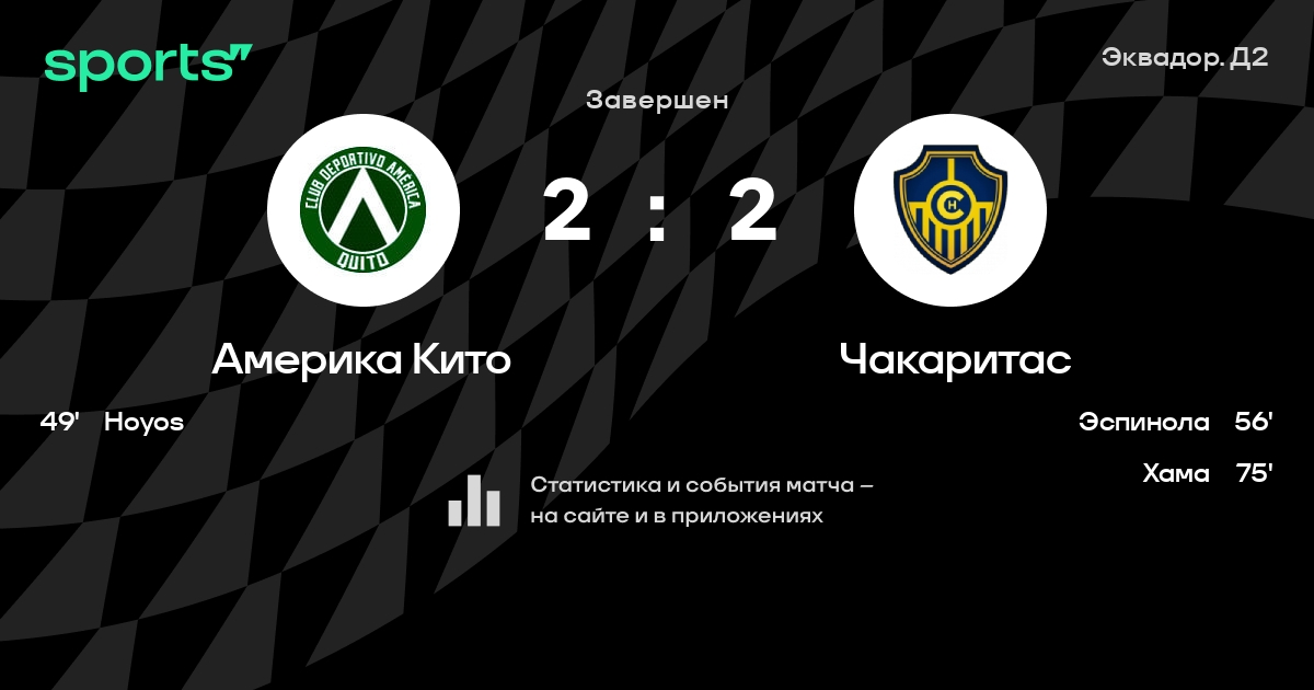Америка Кито – Чакаритас: Чакаритас не проигрывает в 7 из 8 последних матчей против этого соперника