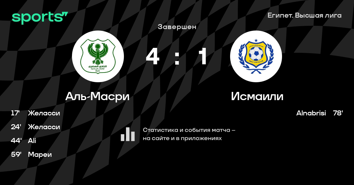 Аль-Масри – Исмаили: Аль-Масри забивает в 5 из 7 последних матчей против этого соперника