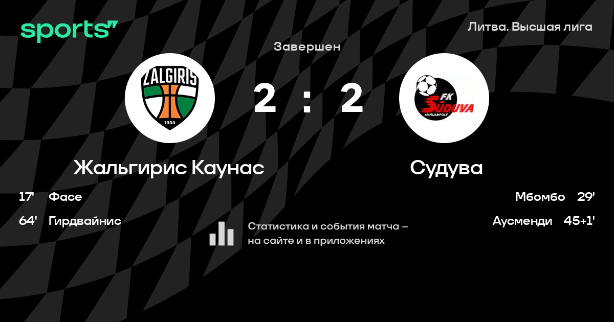 Жальгирис Каунас – Судува: Судува не проигрывает в 6 из 8 последних матчей против этого соперника