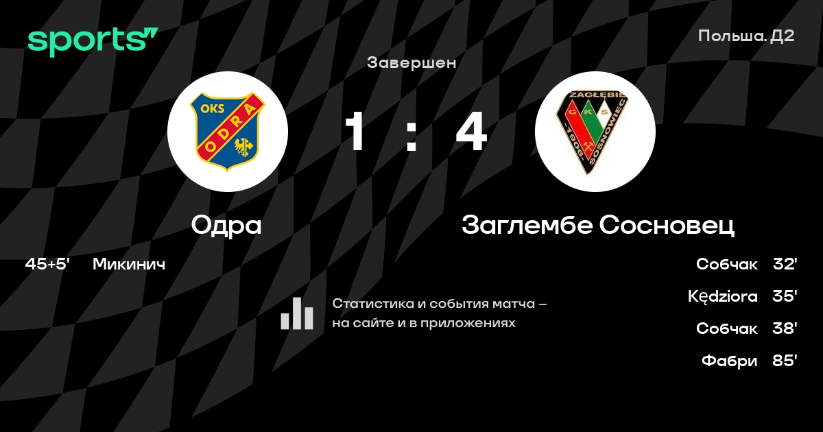 Одра – Заглембе Сосновец: Одра забивает в 4 последних матчах против этого соперника