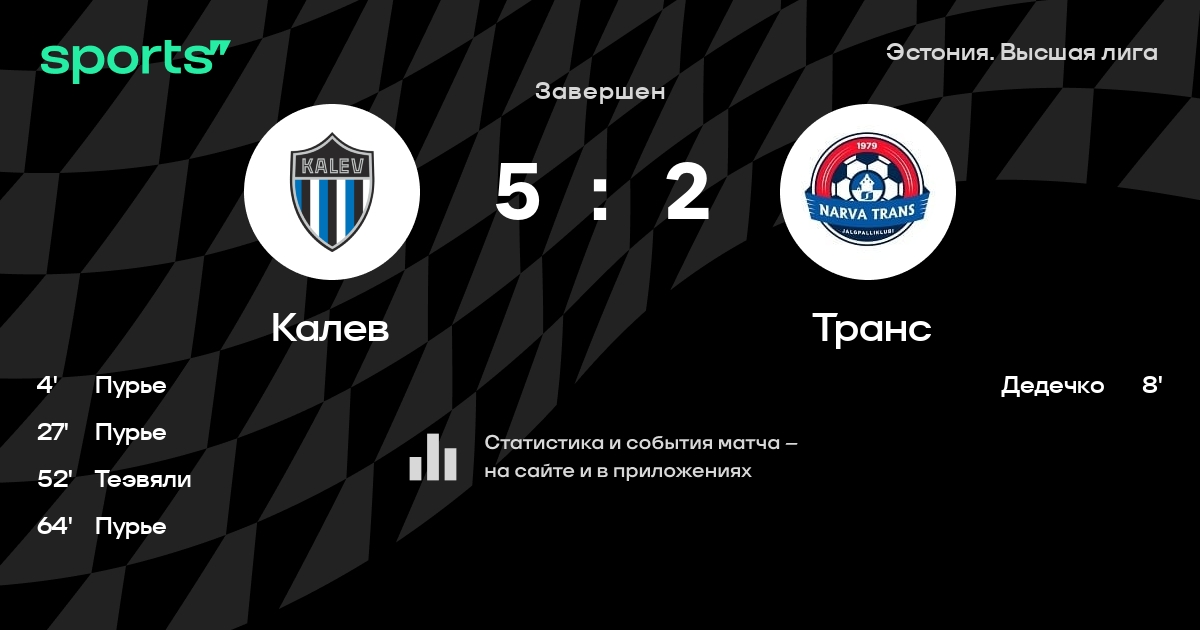 Калев – Транс: Транс забивает в 27 последних матчах против этого соперника