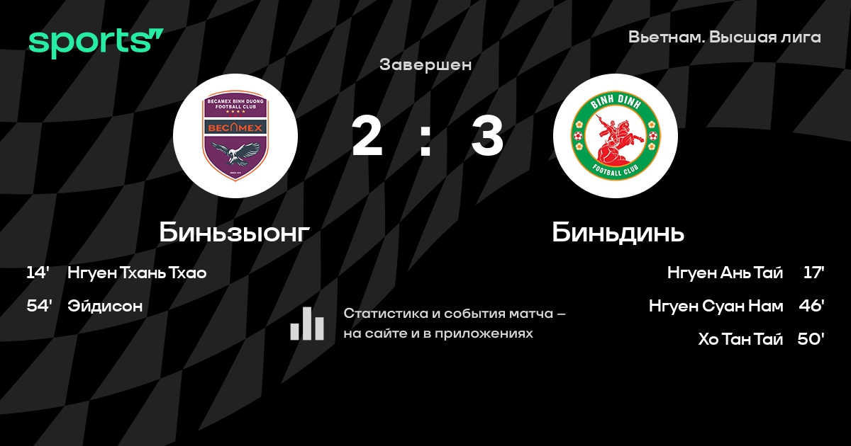 Биньзыонг – Биньдинь: Биньзыонг не проигрывает в 6 последних матчах против этого соперника