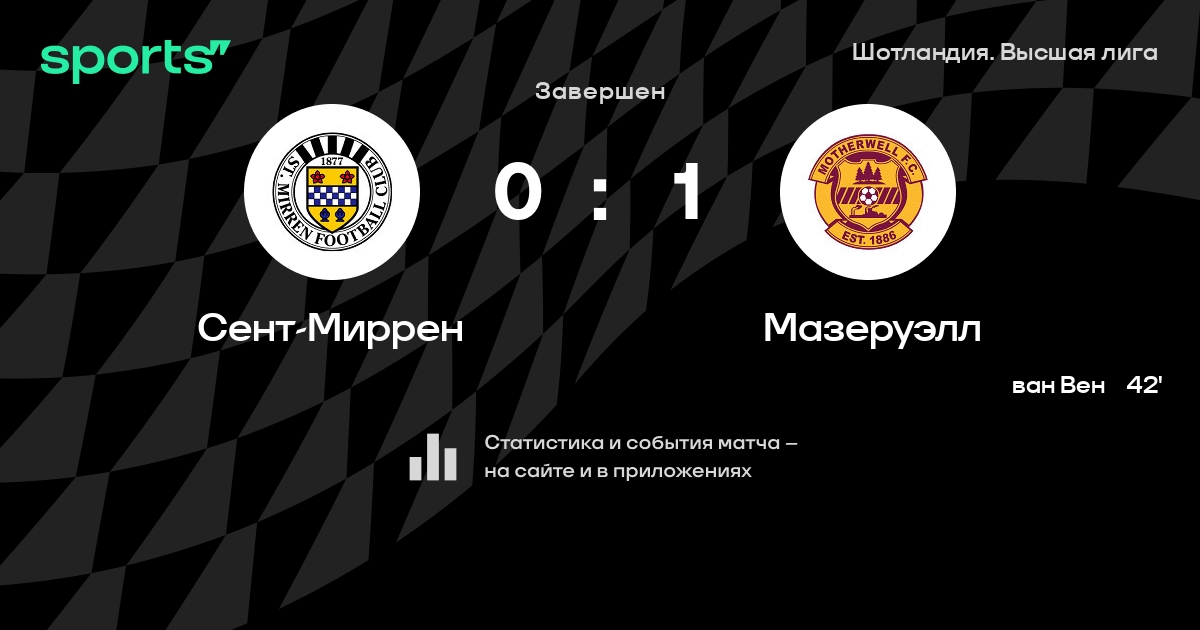 Сент-Миррен – Мазеруэлл: Мазеруэлл не проигрывает в 6 последних матчах против этого соперника