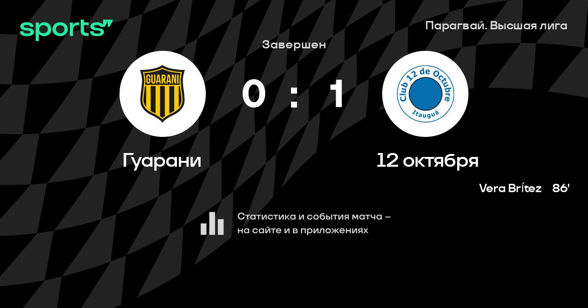 Гуарани – 12 октября: 12 октября забивает в 13 из 15 последних матчей против этого соперника