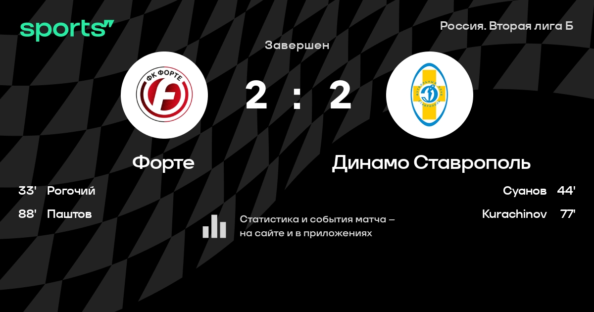 Форте – Динамо Ставрополь: Форте забивает в 4 последних матчах против этого соперника
