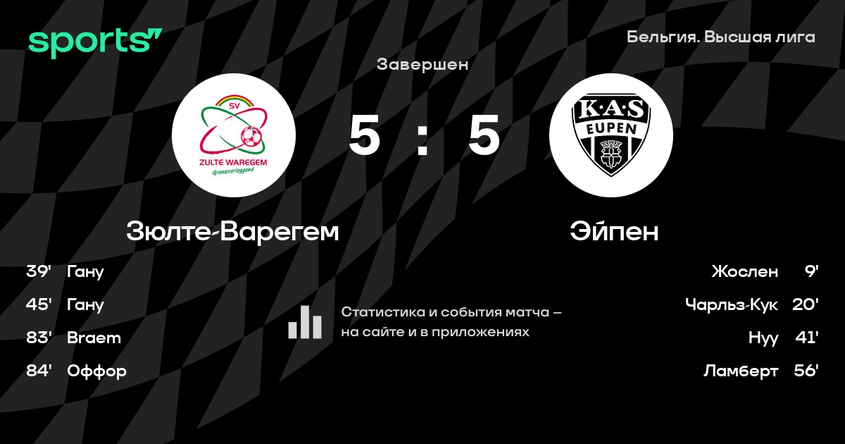Зюлте-Варегем – Эйпен: Зюлте-Варегем забивает в 16 последних матчах против этого соперника
