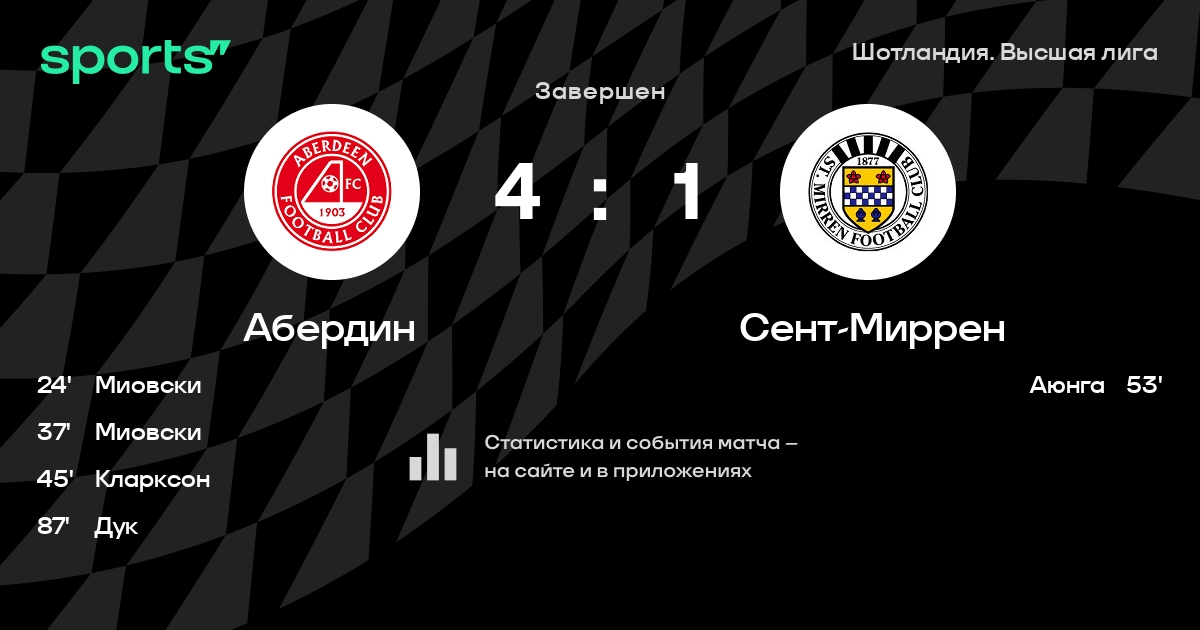 Абердин – Сент-Миррен: Абердин не проигрывает в 13 последних матчах против этого соперника дома