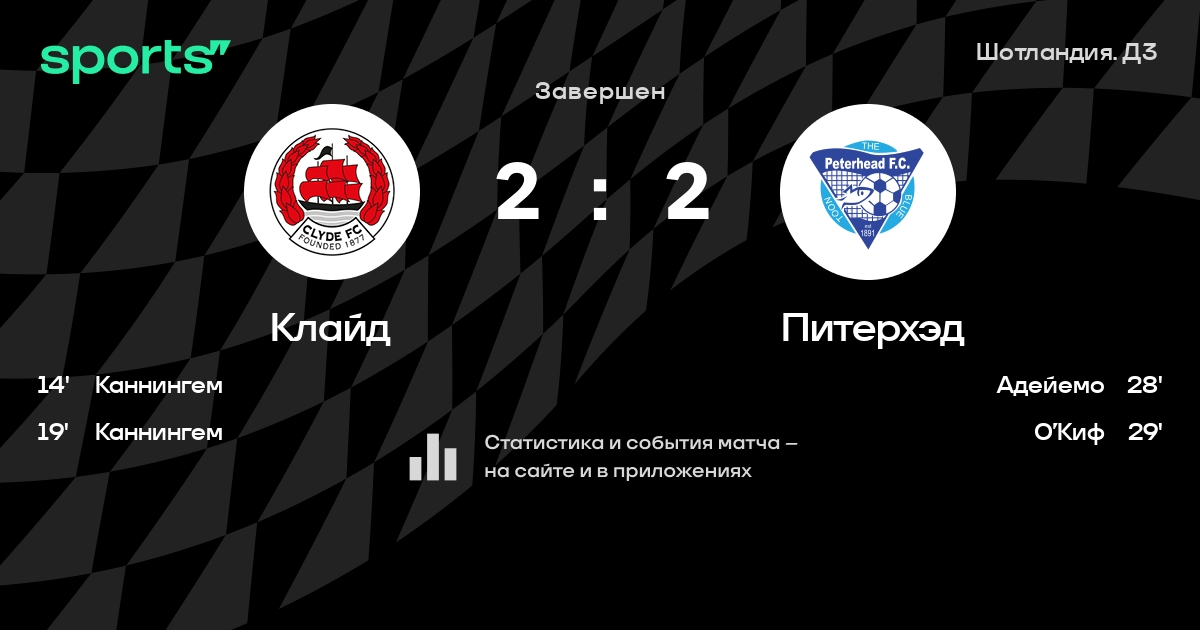 Клайд – Питерхэд: Питерхэд не проигрывает в 5 последних матчах против этого соперника