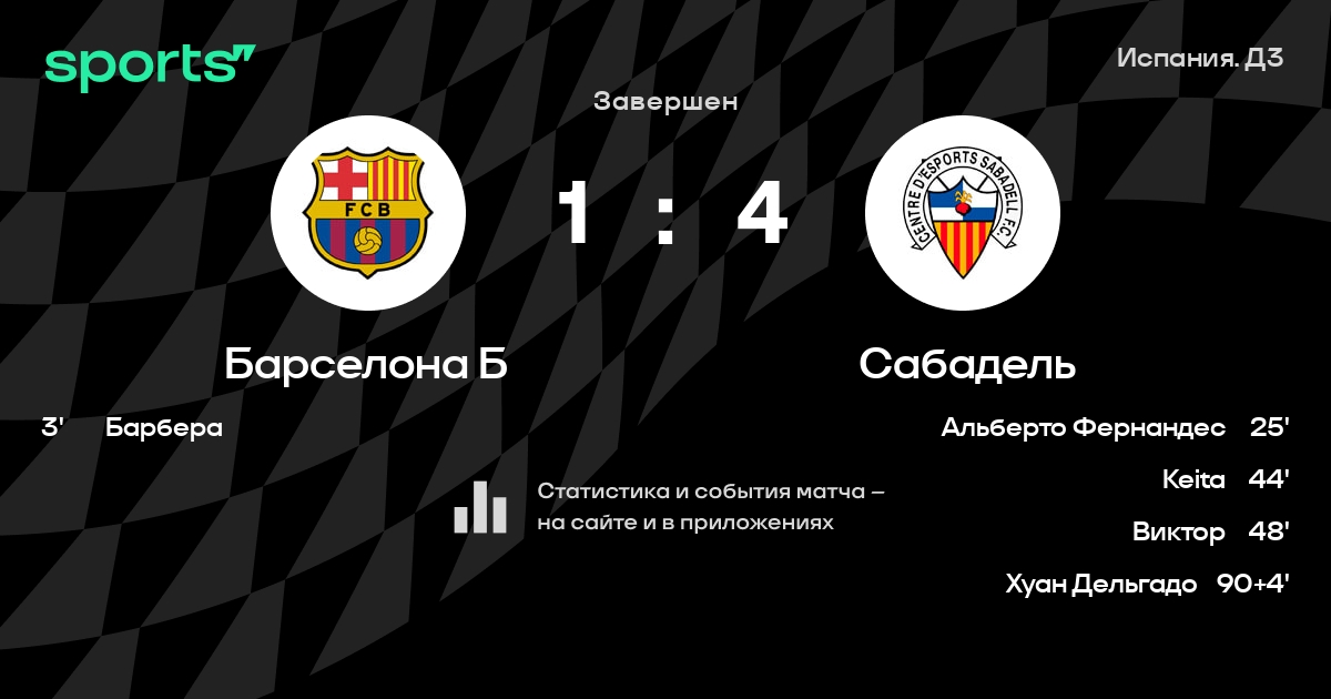 «Барселона Б» - «Сабадель» 1-2 в финальном раунде плей-офф за Сегунду