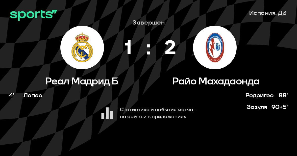 Реал Мадрид Б – Райо Махадаонда: Райо Махадаонда забивает в 6 из 8 последних матчей против этого соперника
