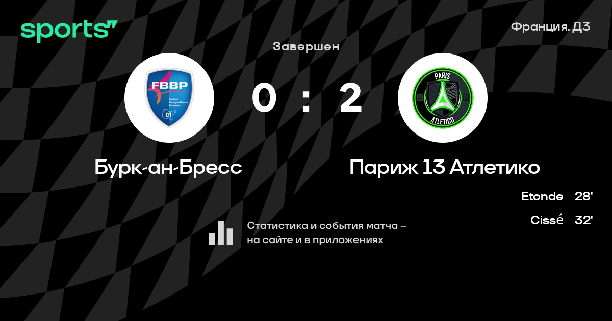 Трансляция Бурк-ан-Бресс - Париж 13 Атлетико
