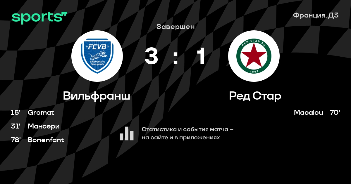 Вильфранш – Ред Стар: Вильфранш не проигрывает в 6 из 7 последних матчей против этого соперника