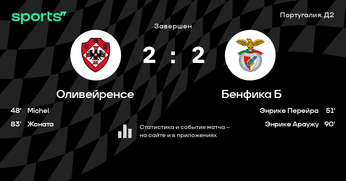 Оливейренсе – Бенфика Б: Бенфика Б не проигрывает в 6 из 8 последних матчей против этого соперника