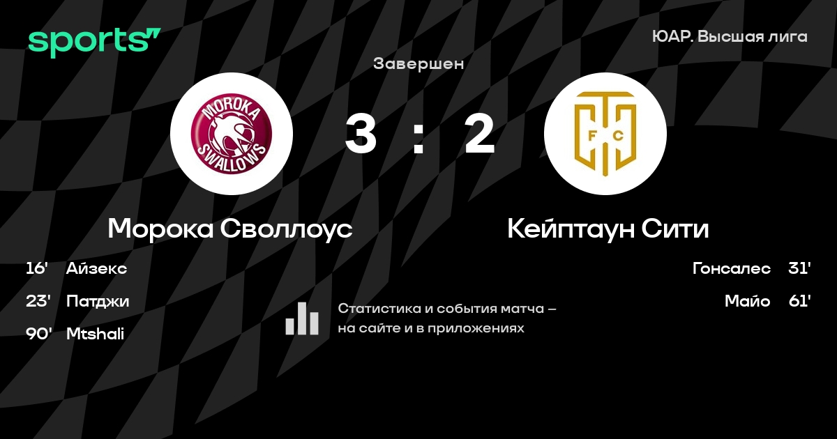 Морока Своллоус – Кейптаун Сити: Морока Своллоус не проигрывает в 5 из 6 последних матчей против этого соперника дома в турнире «Премьер-лига»