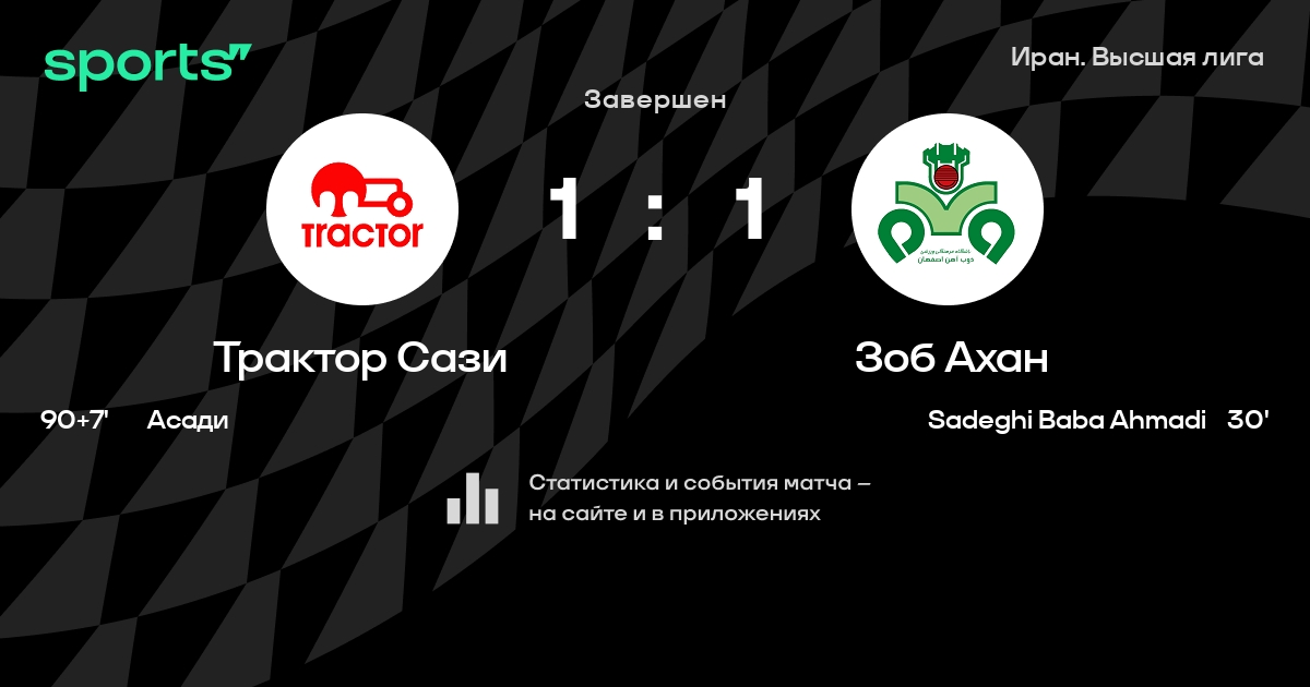 Трактор Сази – Зоб Ахан: Трактор Сази не проигрывает в 5 из 7 последних матчей против этого соперника