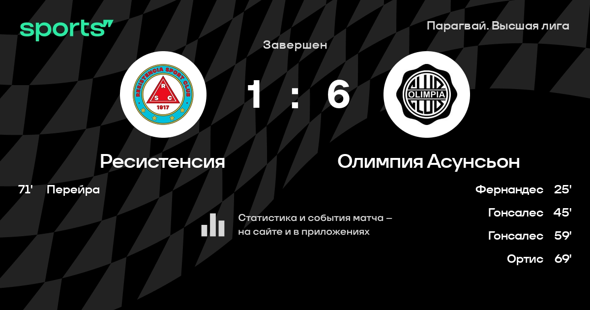 Ресистенсия – Олимпия Асунсьон: Олимпия Асунсьон забивает в 3 последних матчах против этого соперника