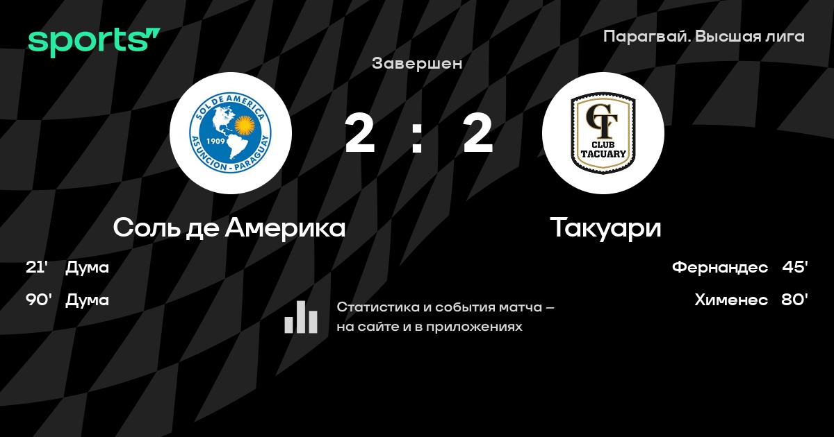 Соль де Америка – Такуари: Соль де Америка побеждает в 3 последних очных матчах дома