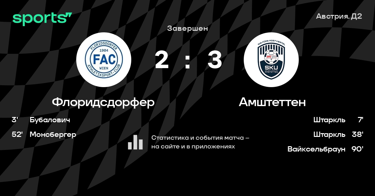 Флоридсдорфер – Амштеттен: Флоридсдорфер забивает в 3 последних матчах против этого соперника